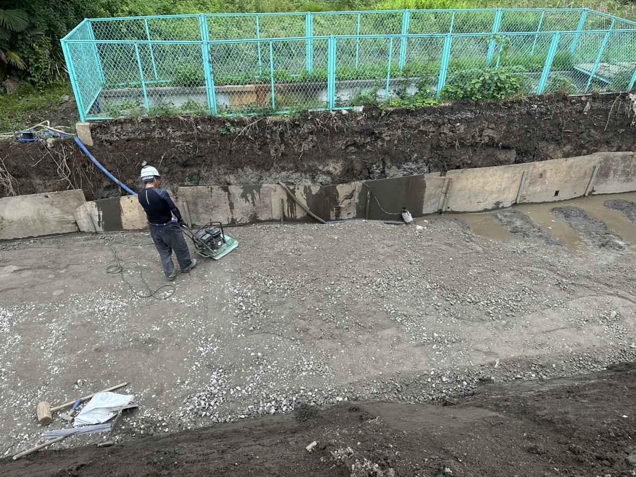 ◉型枠ブロック基礎砕石敷き均し転圧工