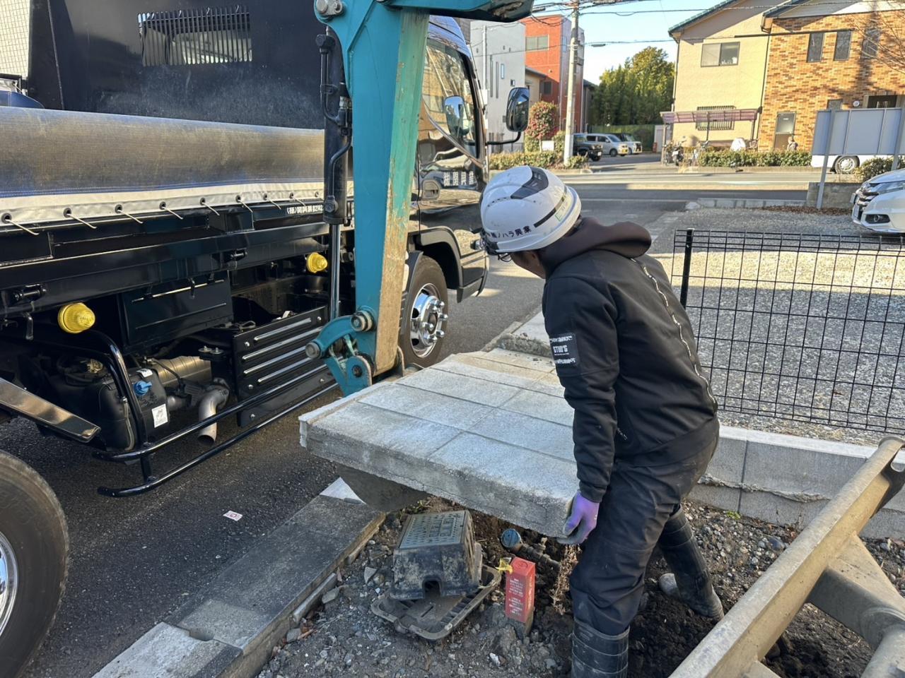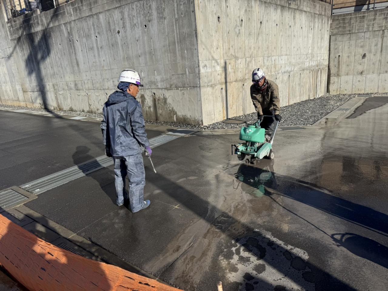 【川口市赤井】 ◉型枠ブロック透水マット敷設工 ◉給排水取り出し道路カッター工 ◉型枠ブロック配筋工事
