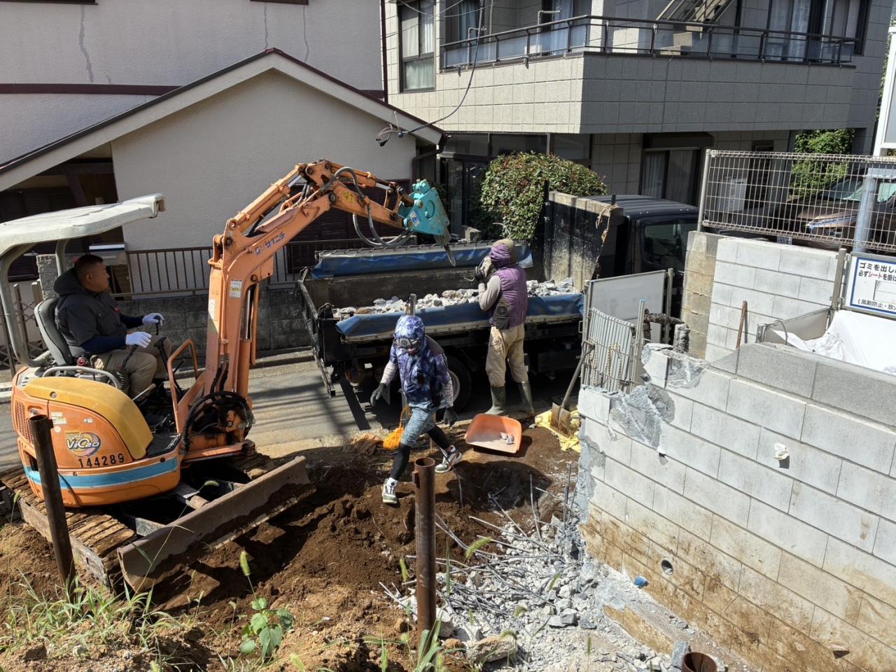 ◉ 杉並区成田東 ・既存型枠ブロック撤去 ・新設型枠ブロック掘削工事