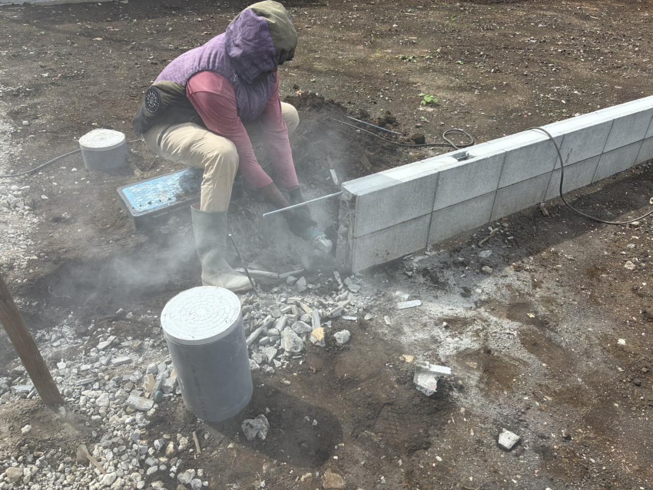 ◉ 中央区本町東 ・間仕切りブロック撤去 ・積み工事